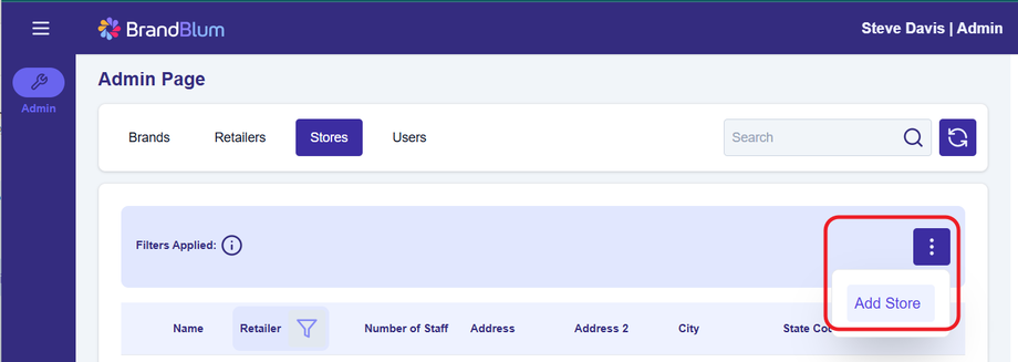After you've added the Retailer, you can add stores to the retailer, under the Stores tab.