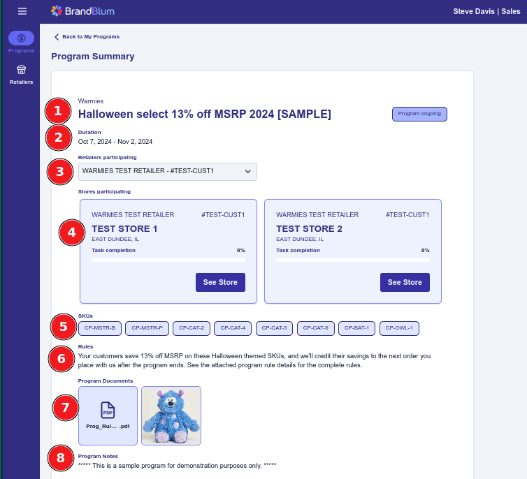 In BrandBlum, Brand Marketers set up promotional campaigns called "programs". Retail Store Team Members can see the program information and complete program tasks. The brand Salesperson can also see the Program information and approve or reject the tasks that the Retail Store Team Members have completed.