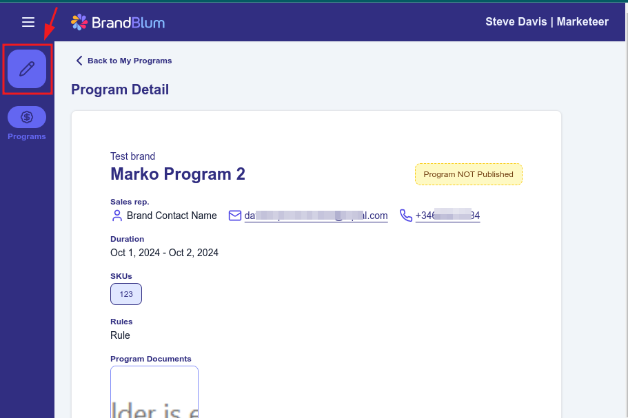 Need to edit the program? Click the pencil icon (shown in red here) on the upper left of the Program Detail screen.